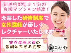 技術講習は専門の女性講師がしっかり教えてくれますので未経験者でも安心して学べます。 安定したお給料が欲しい方、自分のペースに合った仕事がしたい方どんな方でもご相談にお答えします。 最高60%以上、全額日払い、指名料+オプションフルバックと 業界最高水準の給料体制、高級サロンとして最高峰の待遇をご用意しております。 また、店内も内装にこだわり、清潔感ある癒しのリゾート空間の様な感じです。 お仕事の主な内容はアロマオイルを使用し男性のお客様にボディケア、安らぎを与える 高級メンズエステ・リラクゼーションサロンの健全なお仕事です。 浦和は紳士的なお客様がたくさんいらっしゃるエリアなのでとても働きやすいと思います。 是非、一緒に楽しく働いてくれる方をお待ちしています。